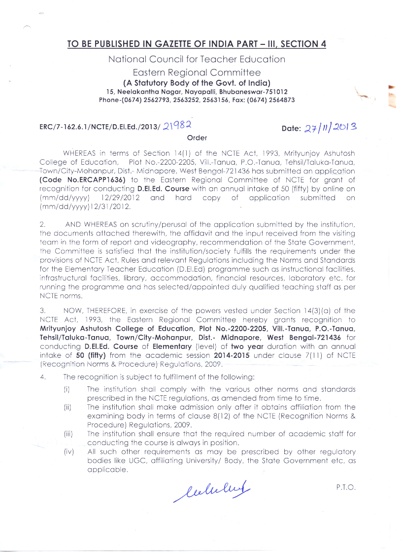 "Quality Education is possible only through quality teachers who come out from quality institutions."